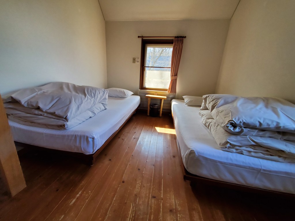 お部屋 お部屋人数部屋数ツイン(バスト・イレなし)2名まで2部屋ツイン+ロフト(バス・トイレなし)3名まで4部屋ツイン(バス・トイレ付)2名まで1部屋ツイン+ロフト(バス・トイレ付)3名まで1部屋 ツイン+ロフト付き お部屋 バス・トイレ お風呂(家族風呂) トイレ・洗面所・シャワー室 共有: クリックして X で共有 (新しいウィンドウで開きます) X Facebook で共有するにはクリックしてください (新しいウィンドウで開きます) Facebook いいね 読み込み中…