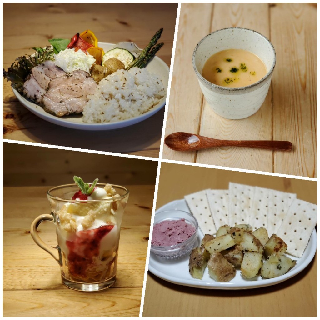 館内ラウンジでの定食形式のお夕飯をご用意いたします。地元産の豚肉、近隣農家のお野菜、ハム、ソーセージなど富良野の味をお楽しみください。